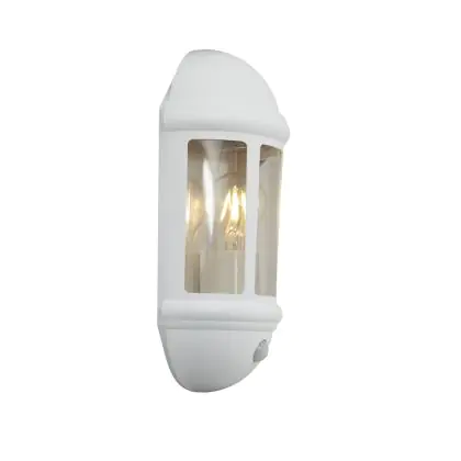 Ansell LED Wall Light Latina Half Lantern White - Suitable for E27 Up To 42W | IP65 - Motion and Light Sensor