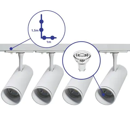 | Manufacturer Name | Complete L shaped 1-Phase Track Set White incl. 4x Spot fixture + GU10 2700K 3W Dim - 1 x 1.5 meters | |