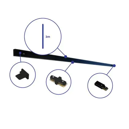Bright Choice Rail Set 1-Phase 3 Meter Black | incl. End Cap, Power Connector and L-Connector