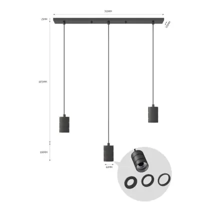 Calex Retro Pendulum Cordset Rectangular Metal Black |incl. cable 2 Meter - Suitable for 3xE27