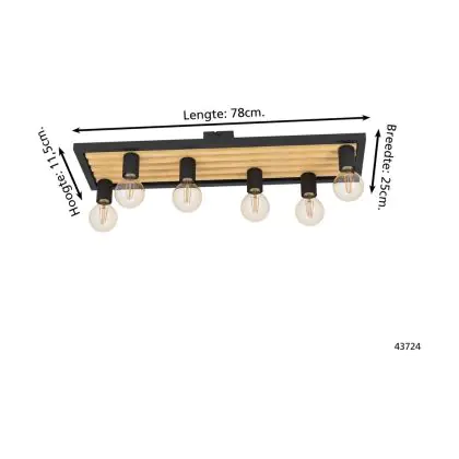 Eglo Ceiling Light Consett Steel Wood Black Brown | IP20 - Suitable for 6x E27