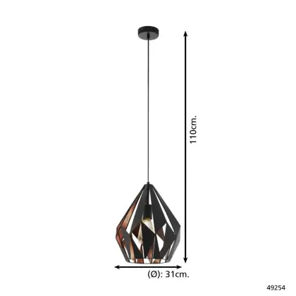 Eglo Pendant Carlton 1 Black, Copper | Suitable for E27