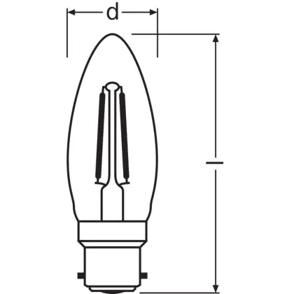 Ledvance Classic Performance LED Bulb B22d Candle Filament Clear 2.5W 250lm - 827 Extra Warm White | Replaces 25W