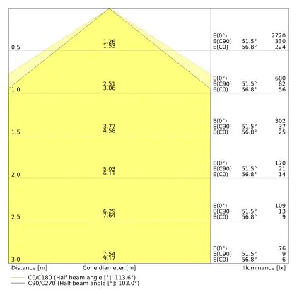 ![]() The colour code is a combination of colour rendering (CRI) and light colour (Kelvin). The first number indicates the colour rendering (1 = very poor colour rendering, 9 = maximum colour fastness). The second and third number contains the light colour. Example: the colour code 830 consists of good colour rendering (8) and warm white light (3000K). |