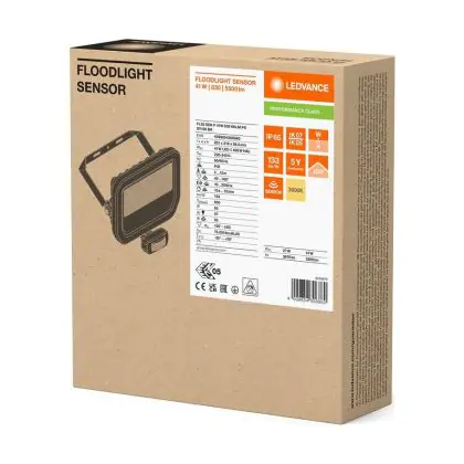 Ledvance LED Floodlight Aluminium Black 41W 5500lm 100D - 830 Warm White | IP65 - Motion And Light Sensor - Symmetrical