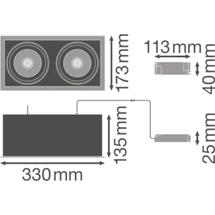 Ledvance LED Spot Square Multi Tiltable Black-White 2x30W 5400lm 38D - 840 Cool White | Cutout 320x160mm