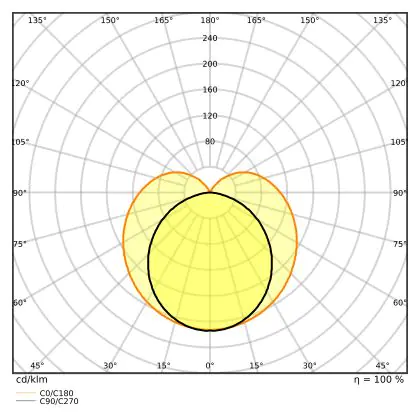 The Luminous Efficacy (lm/W) indicates how efficiently a light source uses energy. We divide the number of lumens by the wattage. The higher the number, the more efficient a product is in terms of energy consumption. LED lighting has a considerably higher lumen/Watt ratio than conventional lighting.