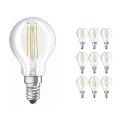 Multipack 10x Ledvance CLASSIC LED E14 Pear Filament Clear 4.2W 470lm - 927 Extra Warm White | Best Colour Rendering - Dimmable - Replaces 40W