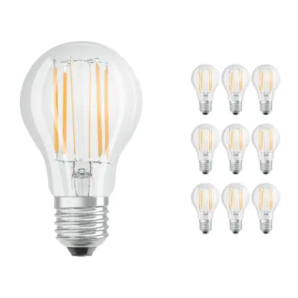 Multipack 10x Ledvance CLASSIC LED E27 Pear Filament Clear 7.5W 1055lm - 827 Extra Warm White | Dimmable - Replaces 75W
