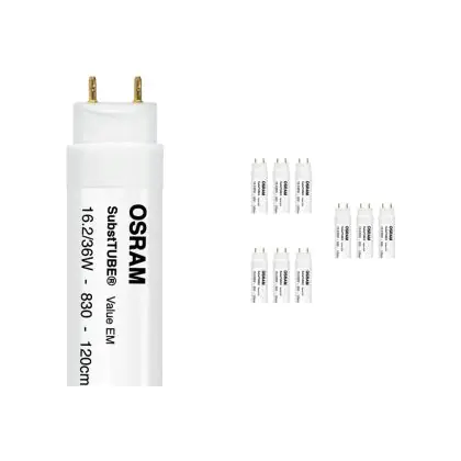 Multipack 10x Osram SubstiTUBE LED T8 Value (EM Mains) Standard Output 16.2W 1530lm - 830 Warm White | 120cm - Replaces 36W