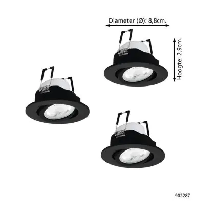 Multipack 3x Eglo LED Spot Saliceto-Z Aluminium Black 4.7W 440lm - 827-865 Tunable White + RGB | 88mm - Cutout 68mm - IP20 - Zigbee Dimmable