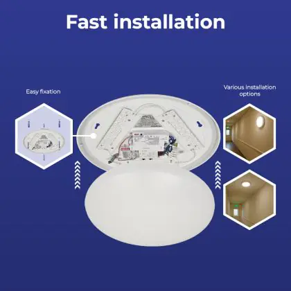 ![]() Lighting with a built-in emergency lighting unit (battery) continues to burn for a certain time if the power fails. |