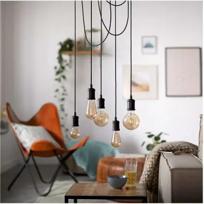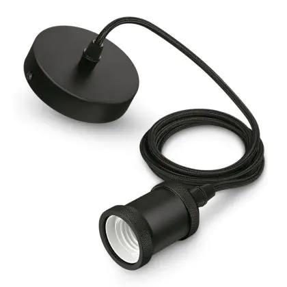 The Philips Cord Vintage E27 Black is a cord with lamp base that, combined with an E27 LED bulb, can serve as a stylish hanging lamp in the dining room, living room or in waiting rooms. The lamp base has a matt black finish and is designed to match well with an industrial interior. Furthermore, the with fabric covered cord is fully adjustable. This gives you the freedom to create a dynamic light plan with multiple Vintage cords consisting of different heights and lamp shapes. Due to their vintage design, the Philips Vintage cord is best suitable with E27 LED Filament bulbs. In addition, seeing that the Philips Cord is compatible with a maximum wattage of 40W, you have access to a large variety of LED bulbs with a varying light intensity.
